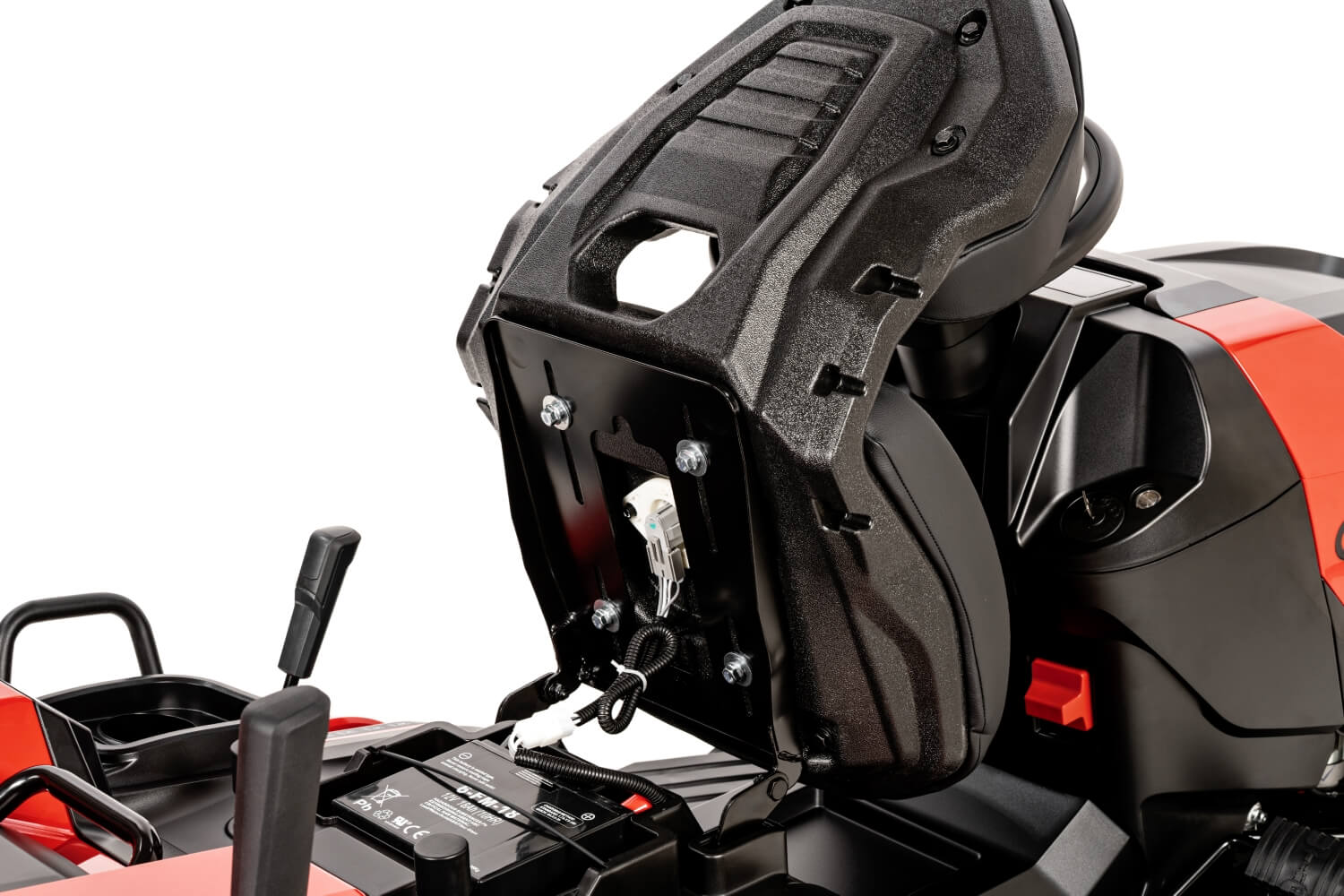 W tym modelu na desce rozdzielczej znajduje się wielofunkcyjny wyświetlacz, który pozwala na bieżąco monitorować kluczowe funkcje i parametry traktora. Na uwagę zasługuje również intuicyjne rozmieszczenie dźwigni regulacji wysokości koszenia jak i przycisk załączania agregatu. Dzięki tak umiejscowionym przełącznikom mamy w efekcie pełną kontrolę nad działaniem traktorka siedząc na wygodnym fotelu.