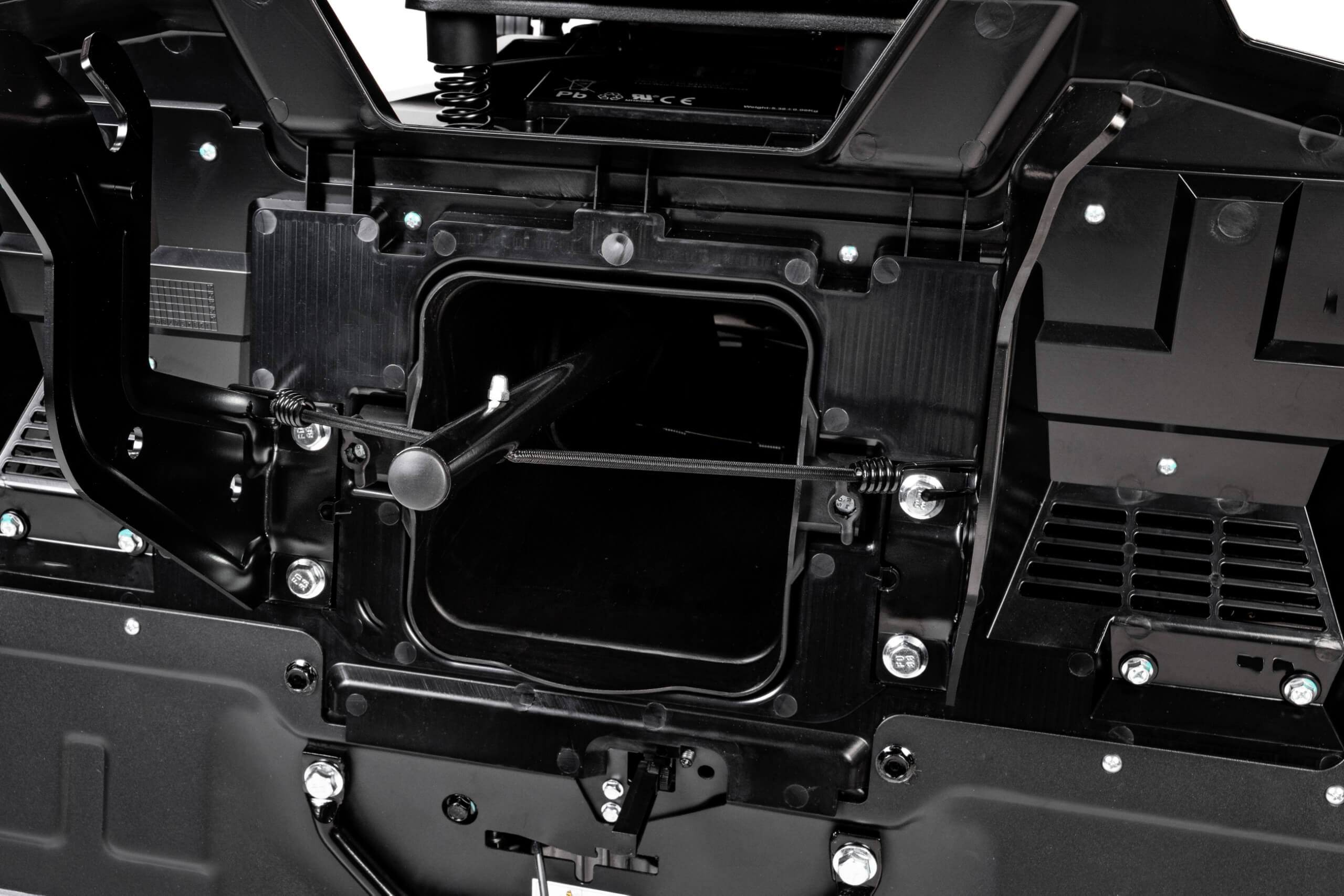 W tym modelu na desce rozdzielczej znajduje się wielofunkcyjny wyświetlacz, który pozwala na bieżąco monitorować kluczowe funkcje i parametry traktora. Na uwagę zasługuje również intuicyjne rozmieszczenie dźwigni regulacji wysokości koszenia jak i przycisk załączania agregatu. Dzięki tak umiejscowionym przełącznikom mamy w efekcie pełną kontrolę nad działaniem traktorka siedząc na wygodnym fotelu. Ekran posiada dodatkowy daszek, która osłania go przed światłem, co zapewnia lepszą widoczność w słoneczne dni.