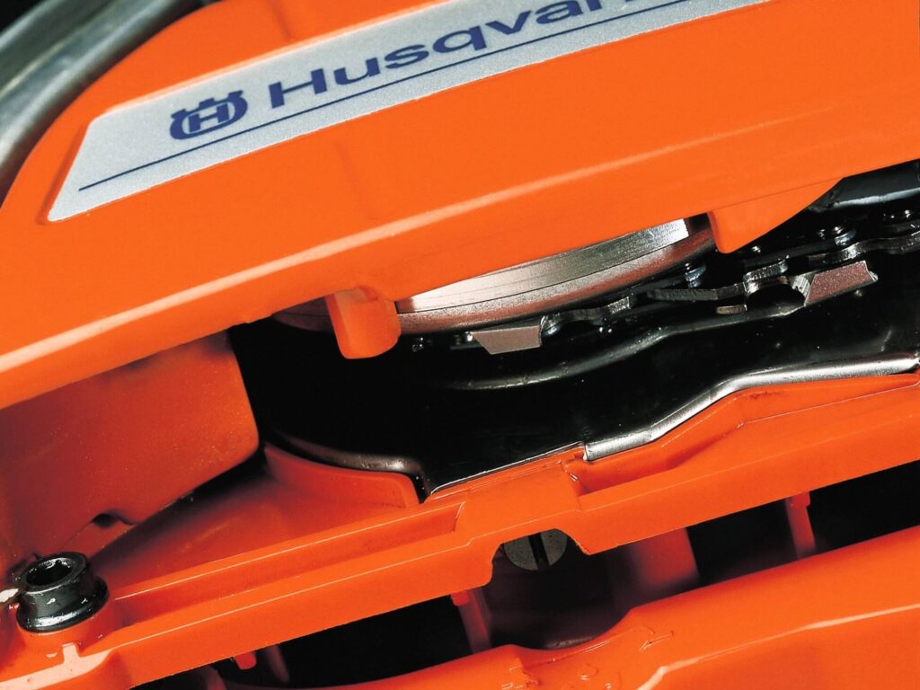 W przypadku odbicia skuteczny hamulec łańcucha aktywowany bezwładnościowo natychmiast zatrzymuje łańcuch, aby zmniejszyć prawdopodobieństwo obrażeń.