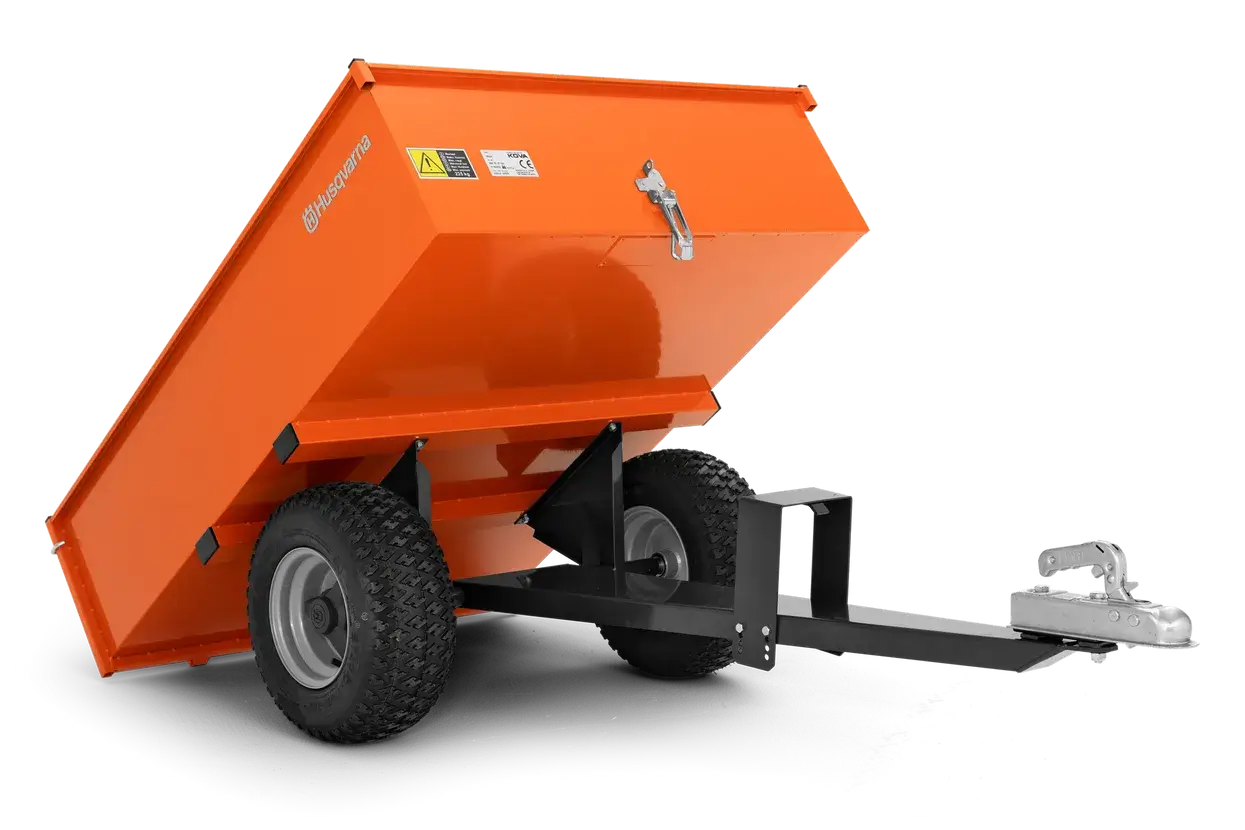 Przyczepa Husqvarna Profi to bardzo mocne i wytrzymałe akcesorium. Posiada bieżnikowane opony ułatwiające poruszanie. Dodatkowym atutem przyczepki jest funkcja wywrotki z unoszoną klapą do łatwego załadunku i rozładunku.
