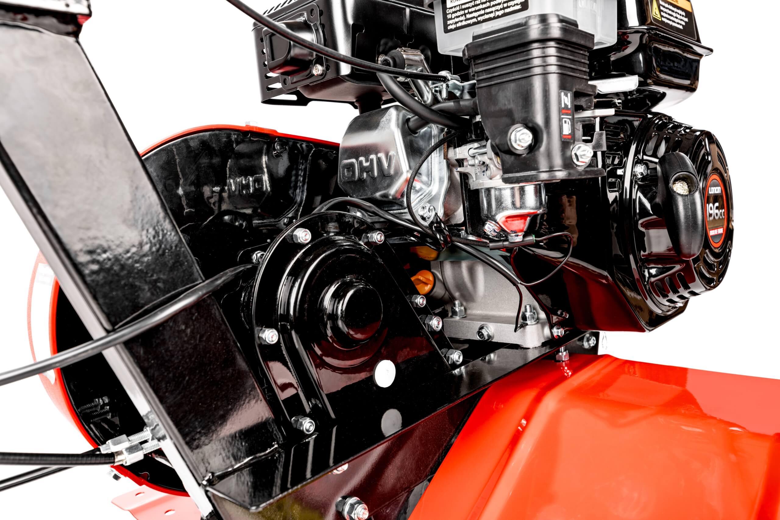 Glebogryzarkę wyposażono w mocny i wydajny silnik Loncin G200F o mocy 4,1 kW przy 3600 obr/min oraz pojemności 196 cm3. Dodatkowym atutem jest żeliwna tuleja oraz zapłon tranzystorowy, który zapewnia przede wszystkim łatwy start nawet w trudnych warunkach atmosferycznych, bez potrzeby stosowania skomplikowanych procedur. Dzięki solidnej budowie i wysokiej jakości materiałów, silnik jest odporny na intensywne użytkowanie. Wyposażony w układ OHV zapewnia lepszy przepływ powietrza i paliwa, co z kolei skutkuje wyższą mocą i lepszymi osiągami. Zwiększa to także efektywność spalania, co przekłada się na oszczędność paliwa.
