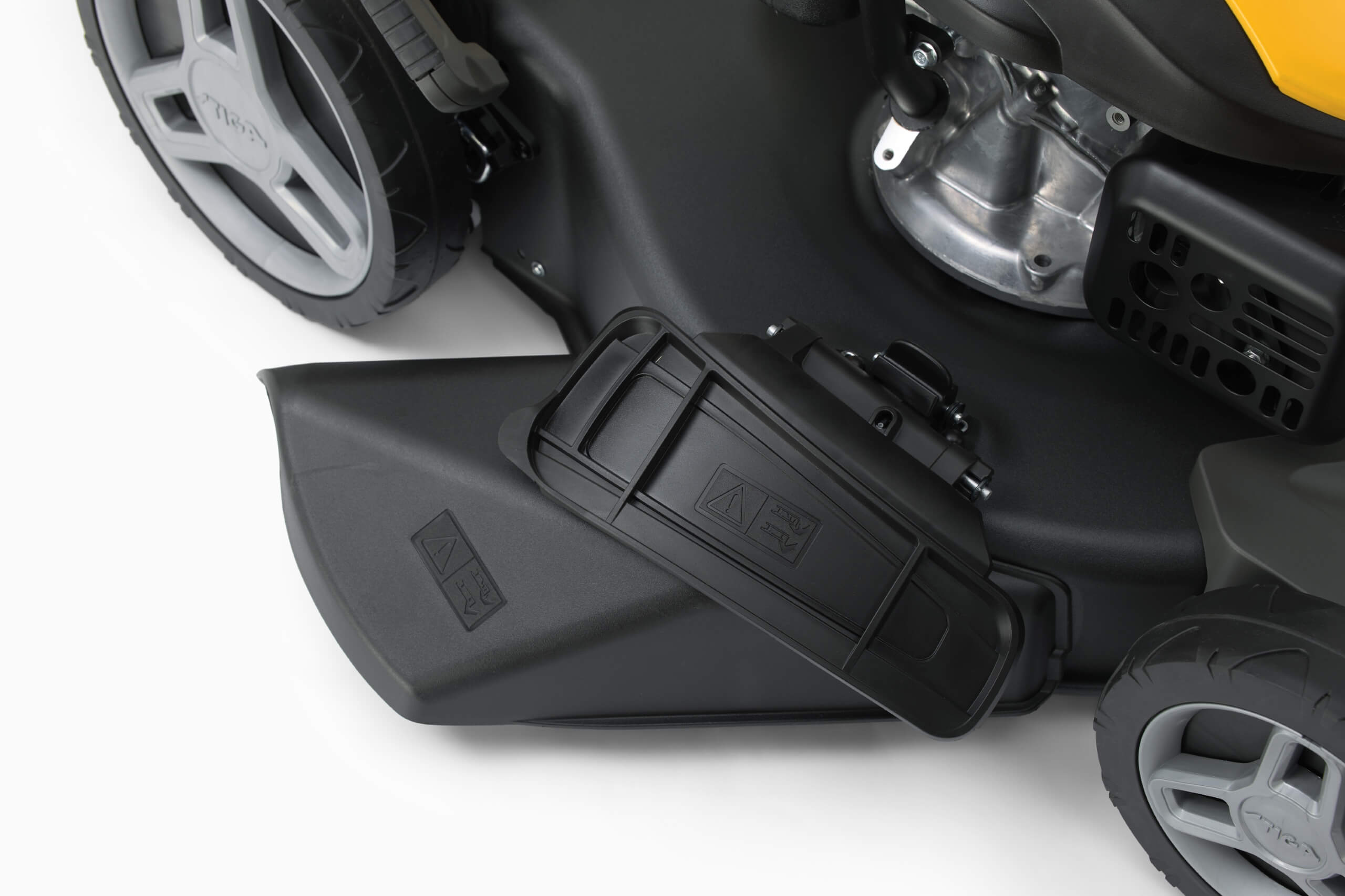 Kosiarkę napędza silnik spalinowy Stiga ST 170 OHV Autochoke, o mocy 2.6 kW przy 2900 obr./min. To nowoczesna i wydajna jednostka napędowa o pojemności 166 cm³, zaprojektowana z myślą o kosiarkach spalinowych średniej i dużej mocy. Jest to silnik czterosuwowy, który łączy solidną konstrukcję z rozwiązaniami ułatwiającymi codzienną eksploatację. Największą zaletą tej jednostki jest inteligentny system Autochoke. Eliminuje on konieczność ręcznego ustawiania ssania przed startem. Silnik automatycznie dostosowuje dawkę paliwa do temperatury, co sprawia, że kosiarka odpala za pierwszym pociągnięciem linki – niezależnie od tego, czy silnik jest zimny, czy rozgrzany. Konstrukcja OHV przekłada się na niższą temperaturę pracy, co wydłuża żywotność silnika i zmniejsza emisję spalin. Jednostka ta jest uważana za jedną z najbardziej niezawodnych w swojej klasie wagowej.