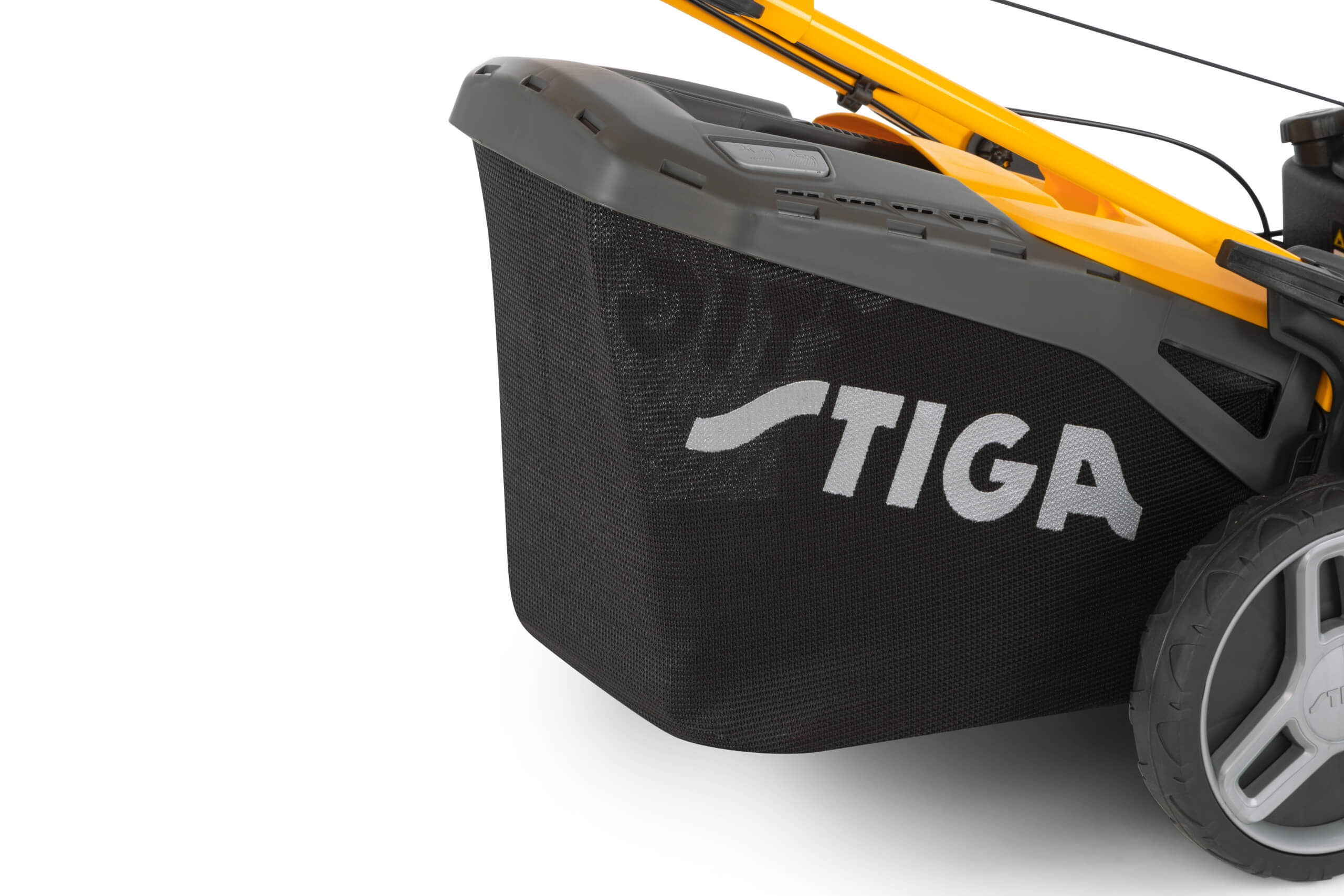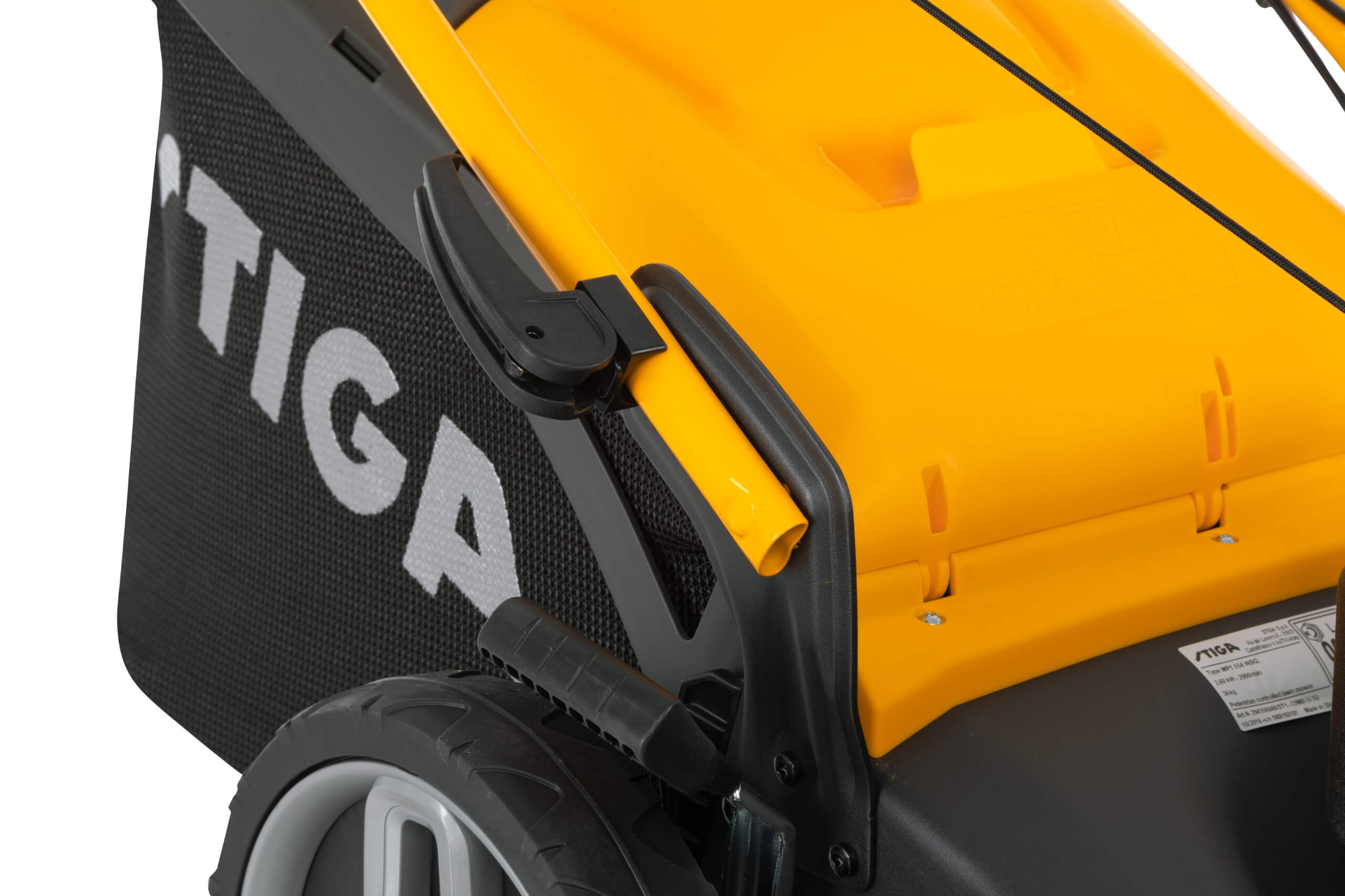 Masz mało miejsca w garażu? Kierownicę można złożyć w kilka sekund, co znacząco zmniejsza wymiary kosiarki podczas transportu i przechowywania poza sezonem. Przedni uchwyt, pełniący rolę zderzaka, dodatkowo ułatwia przenoszenie urządzenia.