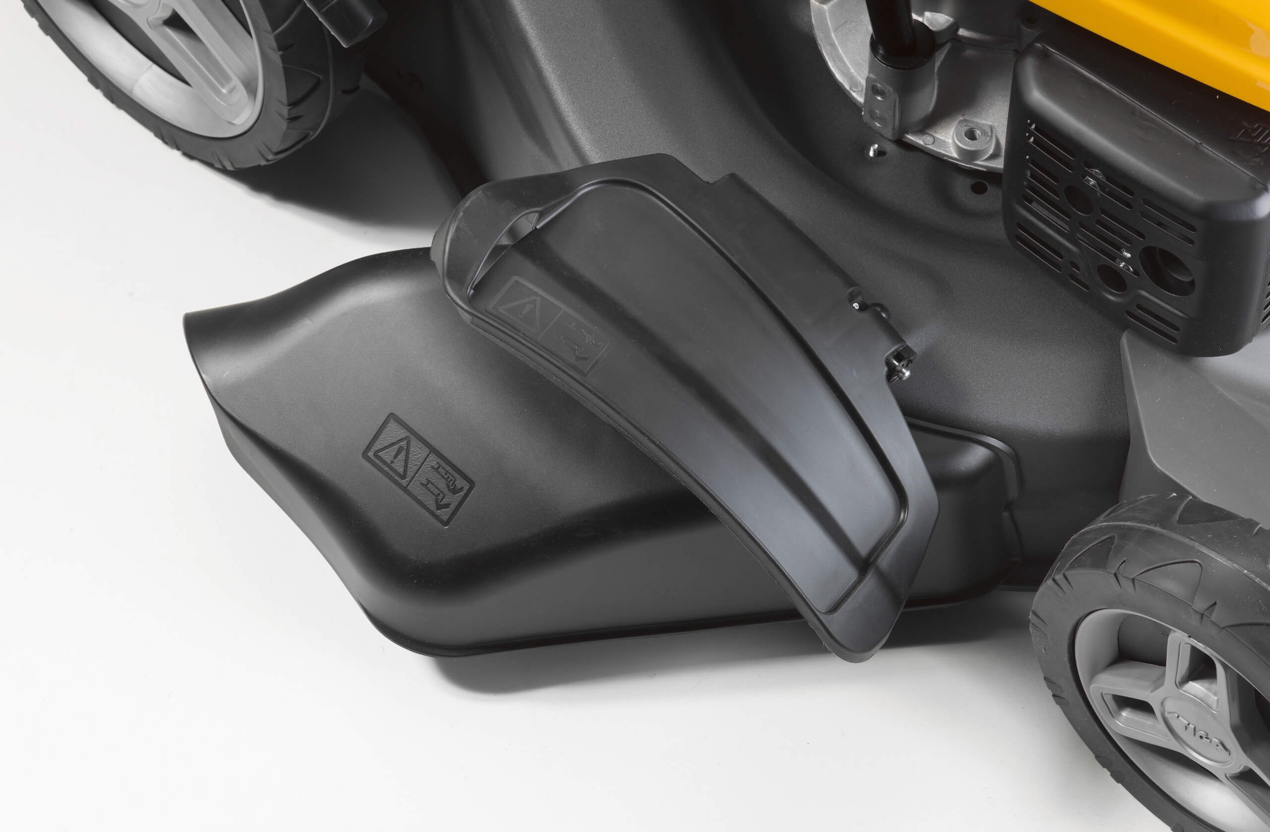 Wyrzut boczny: Idealne rozwiązanie na wysoką, przerośniętą trawę lub rzadziej koszone tereny. Specjalny deflektor kieruje skoszoną trawę na bok, co pozwala na szybką pracę bez konieczności opróżniania kosza.